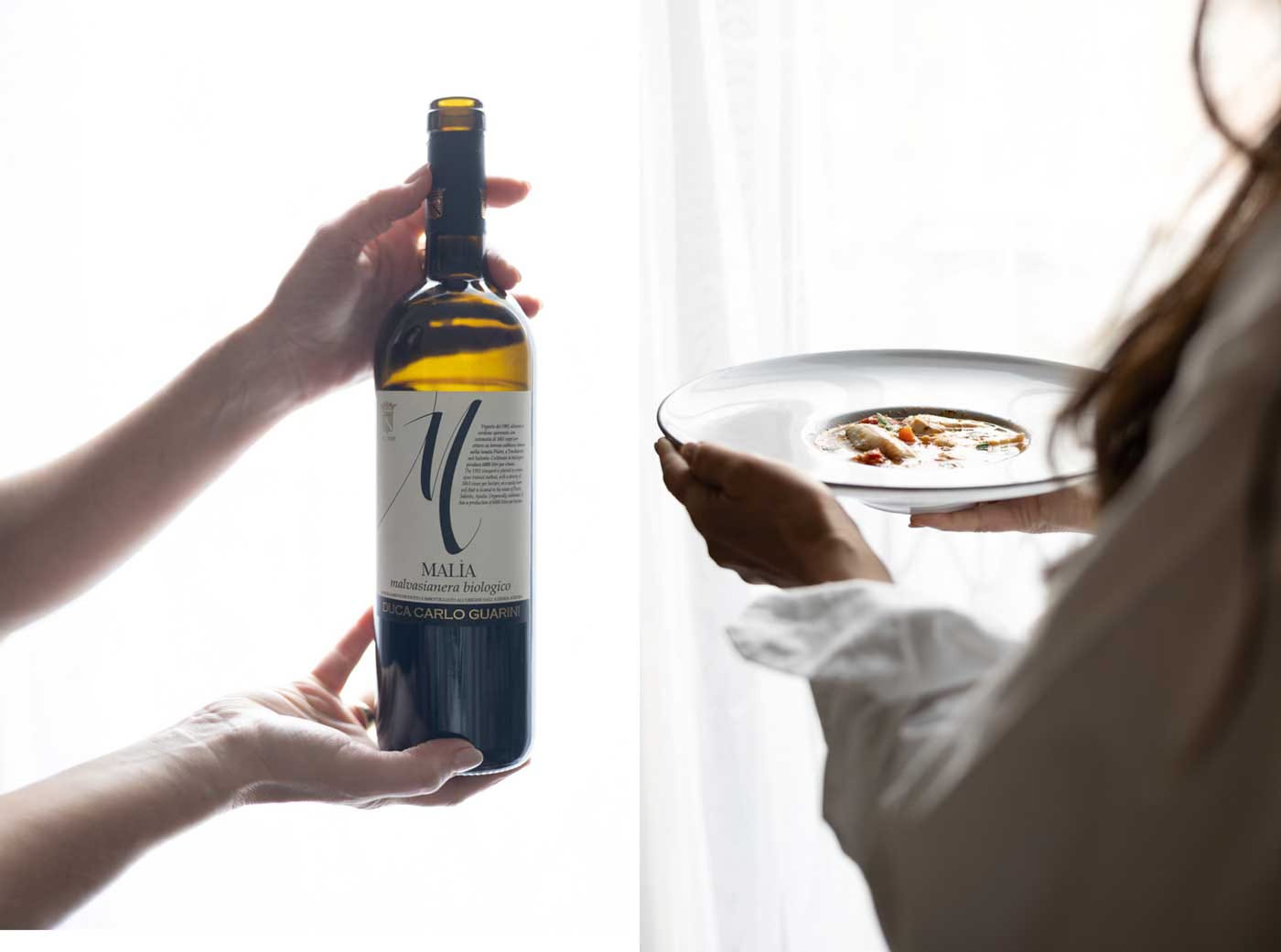 Alongside this dish, I chose a Malvasia Nera di Lecce produced by Duca Carlo Guarini, in Scorrano, in the heart of the Salento area (Lecce, Puglia). Here, in a landscape shaped by red, mineral-rich soils, strong light, and Mediterranean winds, the estate cultivates Malvasia Nera in organic farming and vinifies it in purity through labels such as Malìa and 900.