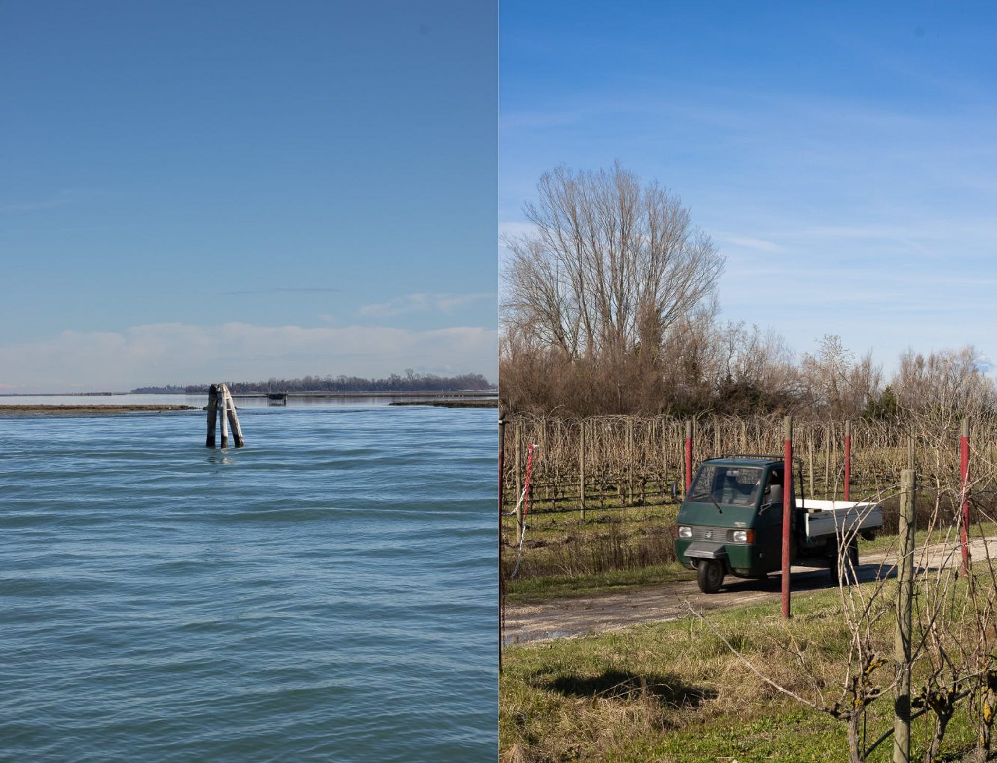 Let yourself be guided by a quiet journey to Sant’Erasmo Island. Walk slowly among vineyards and rows of violet artichokes, where time seems to stretch and soften. Here, only a few residents remain, moving gently through the landscape in their small Ape cars—true custodians of an island that has long been known as the vegetable garden of Venice, offering its first fruits to the city for centuries.